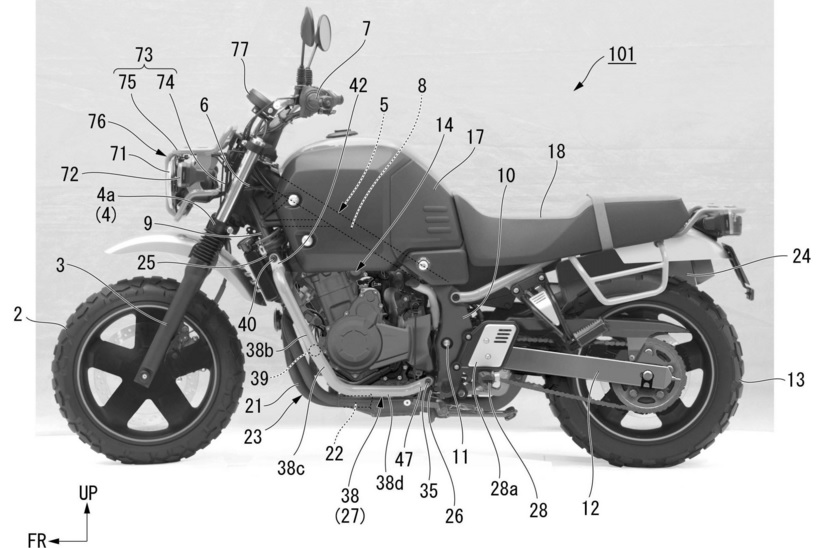The bike shown in the patent image sports different indicators and a different tail light. Also, the brake discs might be different to the ones seen on the concept. The rest of the motorcycle remains largely unchanged. It borrows the CB400F’s engine, which is a Japan-spec model, that puts out 46 PS of max. power and a peak torque of 37 Nm from a water cooled four stroke 399 cc engine.